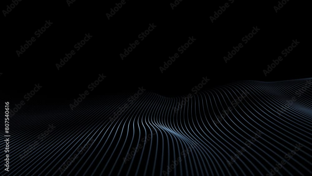The watermark will not be included on Poster.: Loop curvy lines slow motion on clean black animation background -