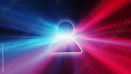Poster loop glowing people icon rotation on shining blue red light rays animation background. - Posters Poster loop glowing people icon rotation on shining blue red light rays animation background. - Posters