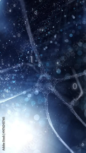 The watermark will not be included on Poster.: Looping shining nerve cell on a blue vertical digital artificial intelligence network -