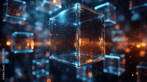 The watermark will not be included on Poster.: Luminous translucent cube abstract digital art