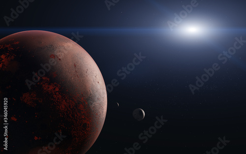 The watermark will not be included on Poster.: Mars planet of solar sysrem and its moon close up - 3d rendered illustration - elements of this image