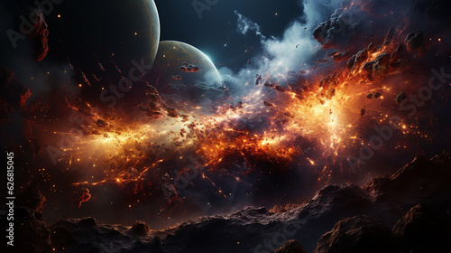 The watermark will not be included on Poster.: Massive planetary collision in space - generative ai