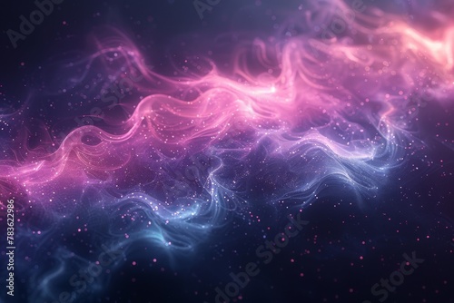 The watermark will not be included on Poster.: Mesmerizing waves of neon pink and blue particles flowing like a silk fabric in an abstract composit