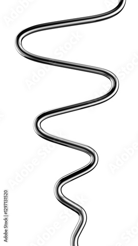 The watermark will not be included on Poster.: Metallic squiggle line roadmap 3d shape isolated - futuristic chrome wriggling wavy line banner, abst