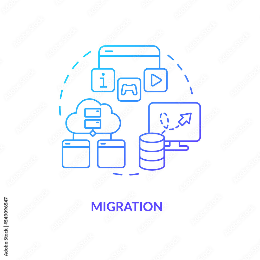 Poster : Migration blue gradient concept icon - move website to new platform - digital integrity - data transfer