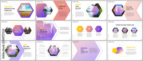 The watermark will not be included on Poster.: Minimal presentations design, portfolio vector templates with hexagonal design background, hexagon s