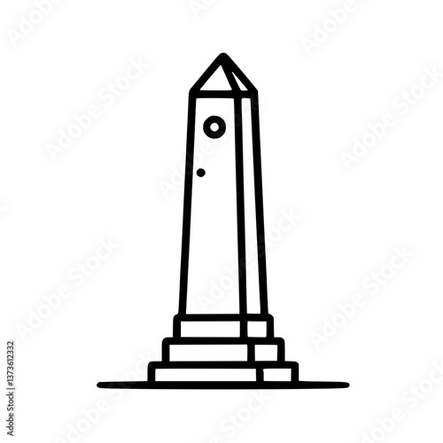 The watermark will not be included on Poster.: Minimalist line drawing of a tall imposing monument it features a pyramidal top and tiered base stan