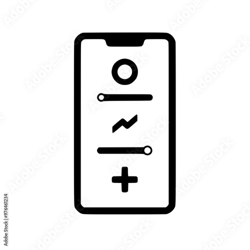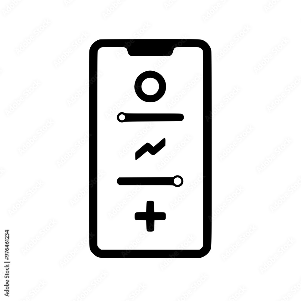 The watermark will not be included on Poster.: Minimalist monochrome icon of a smartphone with various symbols on the screen -