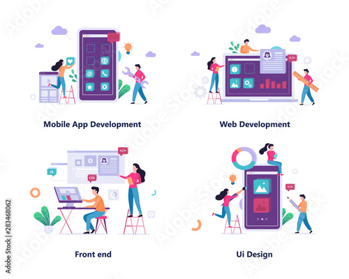The watermark will not be included on Poster.: Mobile app and web development banner concept set