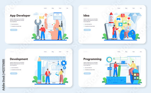 The watermark will not be included on Poster.: Mobile app development web banner or landing page set - modern technology