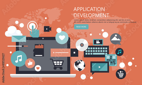 The watermark will not be included on Poster.: Mobile application and mobile app development concept - project development and business ideas - flat