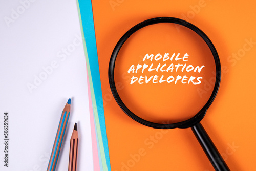 The watermark will not be included on Poster.: Mobile application developers - magnifying glass on an orange background