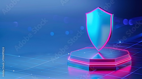 The watermark will not be included on Poster.: Modern 3d cybersecurity shield icon visualization