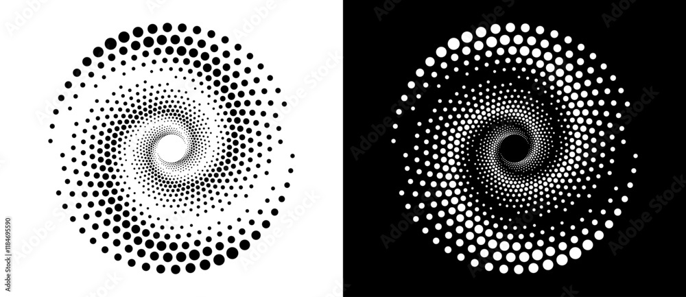 Poster modern abstract background. halftone dots in circle form. spiral logo, icon or design element. black