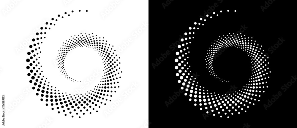 The watermark will not be included on Poster.: Modern abstract background - halftone dots in spiral - round logo - vector dotted frame - design element