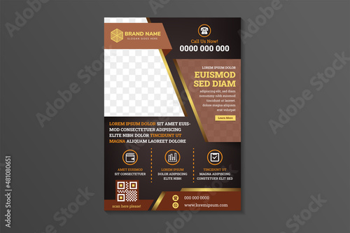 Modern abstract flyer design template use vertical layout - dark brown background combined with orangPoster