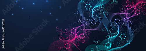 Poster modern abstract molecules structure for science or medical background. dna helix or atom visualizati
