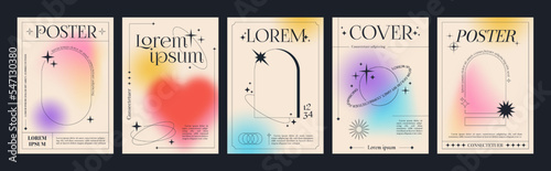 Poster modern fluid gradient posters with linear forms and sparkles. trendy minimalist aesthetic print with