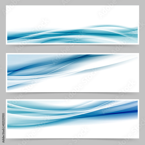 The watermark will not be included on Poster.: Modern header set with abstract blue wave lines