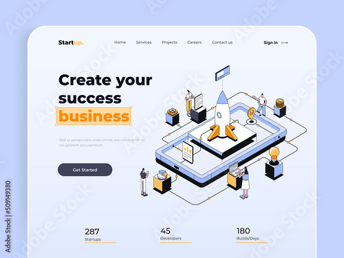 The watermark will not be included on Poster.: Modern isometric design concept of startup for website and mobile website - landing page template - ea