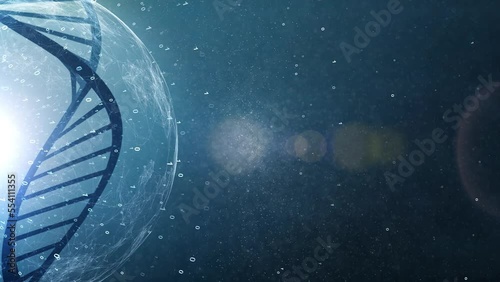 The watermark will not be included on Poster.: Modern shining abstract dna chain and binary numbers code sphere animation copy space blue backgroun