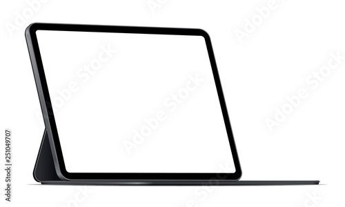 Poster : Modern tablet computer stand with blank screen isolated on white background - side view - vector illu