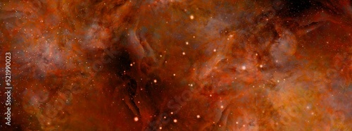 The watermark will not be included on Poster.: Nebula and stars in night sky web banner - space background with realistic nebula and shining stars -