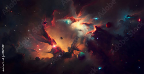 The watermark will not be included on Poster.: Nebula on a background of outer space whis planets