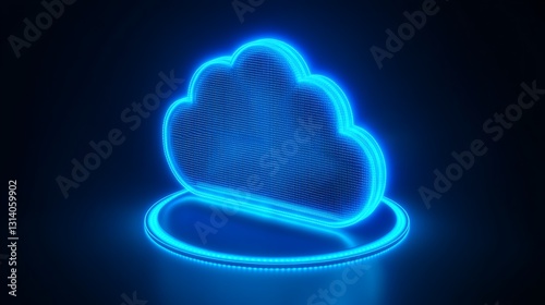 The watermark will not be included on Poster.: Neon cloud icon with bright glow effect for digital concepts and technology theme