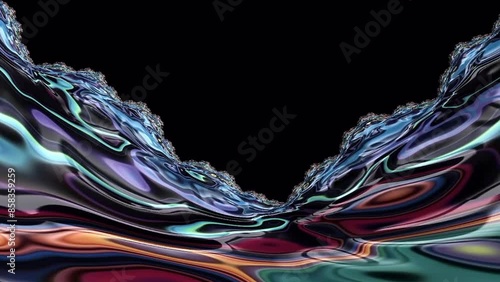 The watermark will not be included on Poster.: Neon color flowing on mountain fractal marble with black background - loop able, topography map, data