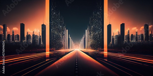 The watermark will not be included on Poster.: Neon highway in a digital environment abstract background, generative ai