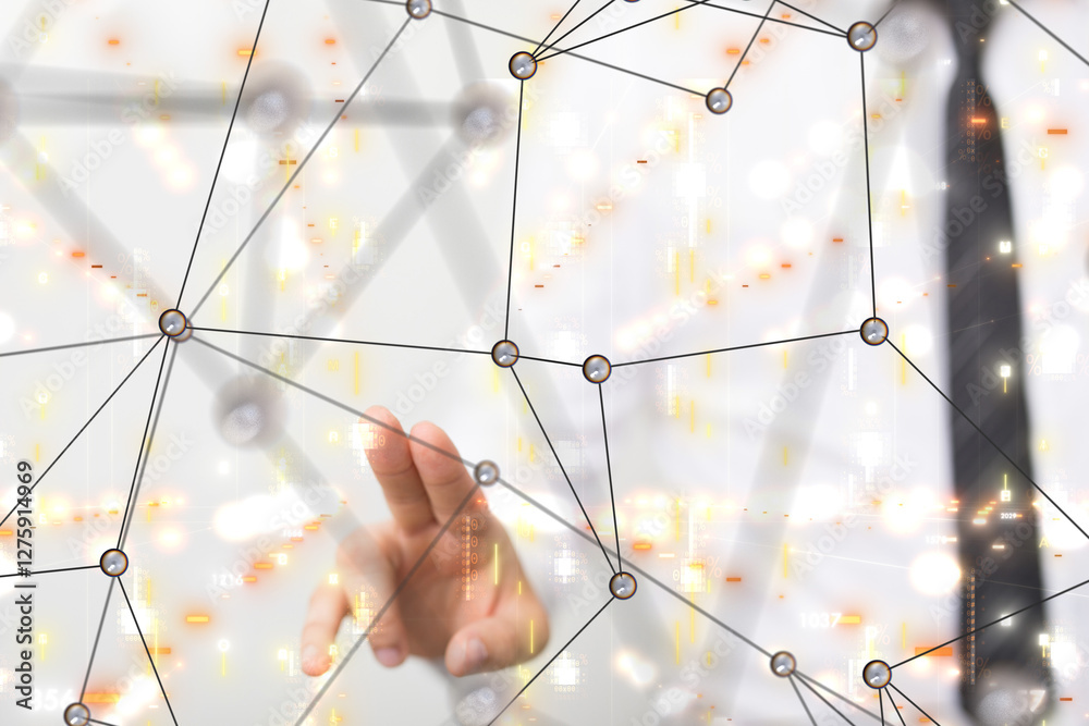 The watermark will not be included on Poster.: Neural network 3d illustration - big data and cybersecurity