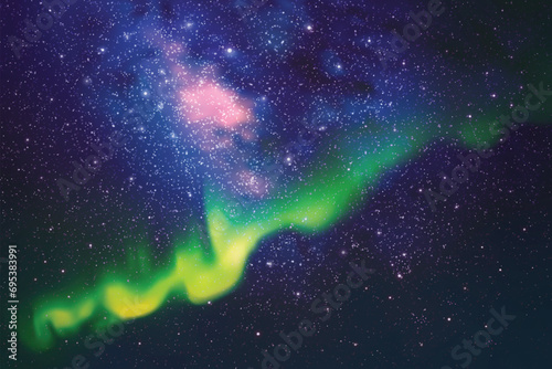 Poster night starry sky. milky way and northern lights. green aurora borealis.