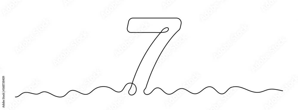 The watermark will not be included on Poster.: Number 7 in continuous line drawing style - line art of number seven - vector illustration - abstract d