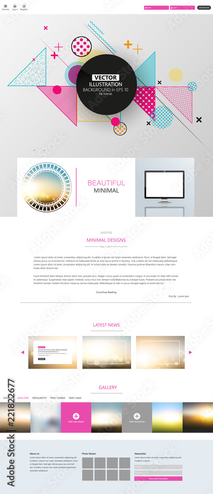 The watermark will not be included on Poster.: One page website for your business with abstract colorful geometric header design -