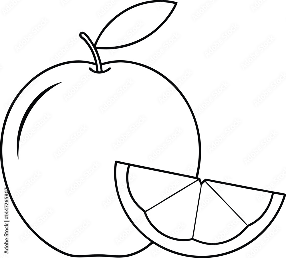 Poster : Orange fruit whole and sliced segment drawn in continuous line style for minimalist food art citrus