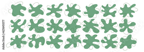 The watermark will not be included on Poster.: Organic amoeba blob shape abstract green color with line vector illustration isolated on transparent