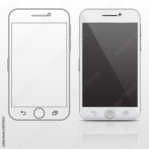 Outline and realistic smartphone, cell phone vector design template in thin line style - screen gadgePoster