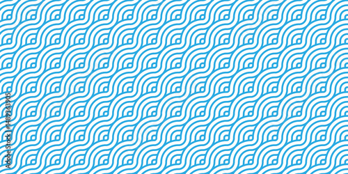 Poster : Overlapping pattern minimal diamond geometric waves spiral abstract circle wave line - blue seamless