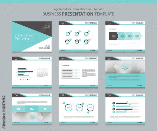 The watermark will not be included on Poster.: Page layout design template for business presentation page with page cover background design and inf