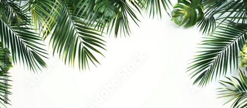 Poster palm branches in green as a top border on a white backdrop with room for copy space image
