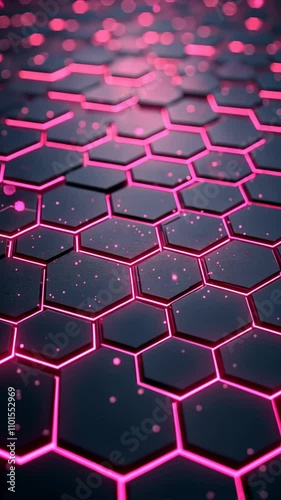 Poster : Pink neon hexagons: abstract digital art showcasing a mesmerizing grid of hexagons illuminated by vi