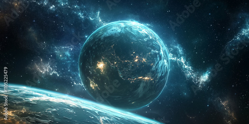 The watermark will not be included on Poster.: Planet against the background of the outer space