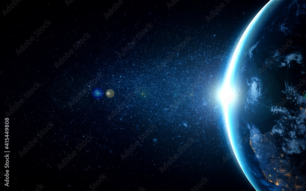 The watermark will not be included on Poster.: Planet earth globe view from space showing realistic earth surface and world map as in outer space p