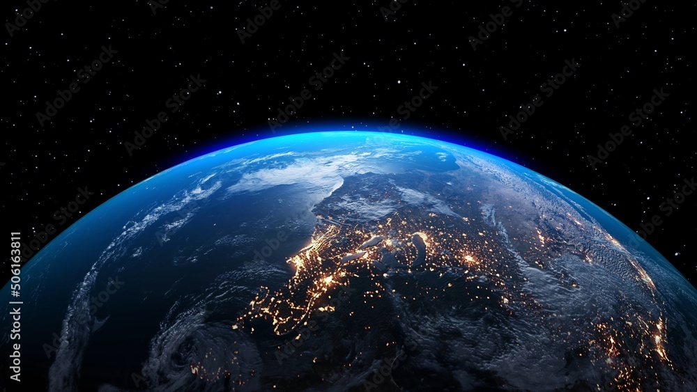 Poster planet earth with realistic geography surface and orbital 3d cloud atmosphere . outer space view of  - Posters Poster planet earth with realistic geography surface and orbital 3d cloud atmosphere . outer space view of - Posters