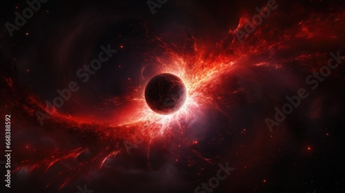 Poster : Planet in space - red star formed in an eclipse - abstract galaxy - colorful space galaxy cloud nebula -