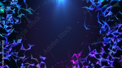 The watermark will not be included on Poster.: Poligonal neon background border - abstract triangular technology network connections - plexus geometr