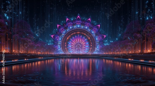 The watermark will not be included on Poster.: Psychedelic virtual reality landscape with vibrant patterns and colors