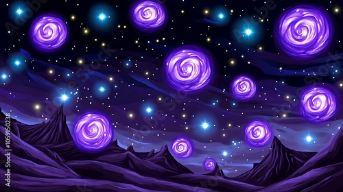 The watermark will not be included on Poster.: Purple nebula background for space themes smooth blue background with copy space for advertisements