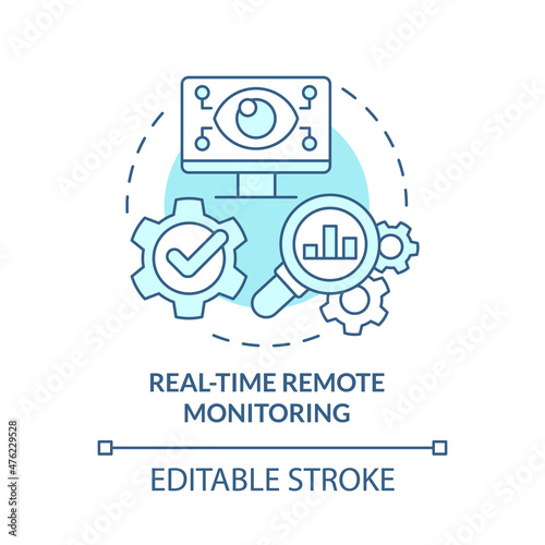 The watermark will not be included on Poster.: Real time remote monitoring turquoise concept icon - digital twin benefit abstract idea thin line ill